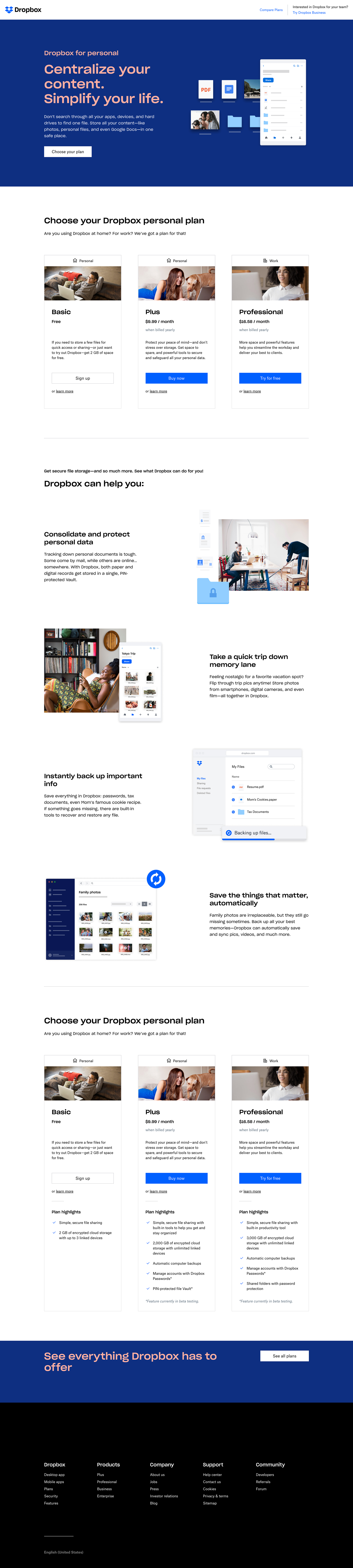 Dropbox | Q2 2020 Individual Plans Landing Page